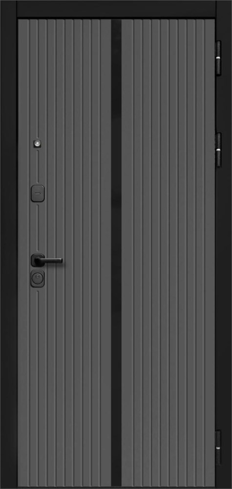 - Внешнее покрытиефрезерованная МДФ-панель 8 мм, цвет – «графит», наличники - «черная шагрень». Декоративная вставка - черная лакобель