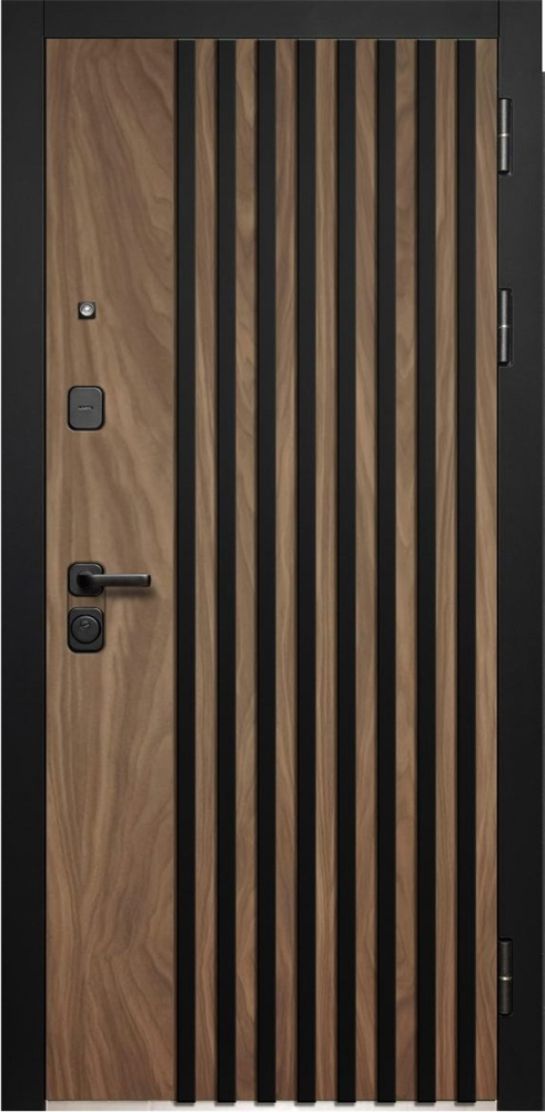 Внешнее покрытие: фрезерованная МДФ-панель 12 мм, вставка черный лакобель, цвет пленки «Сатин черный», «Орех американский мокко»
